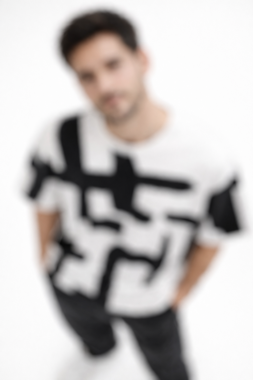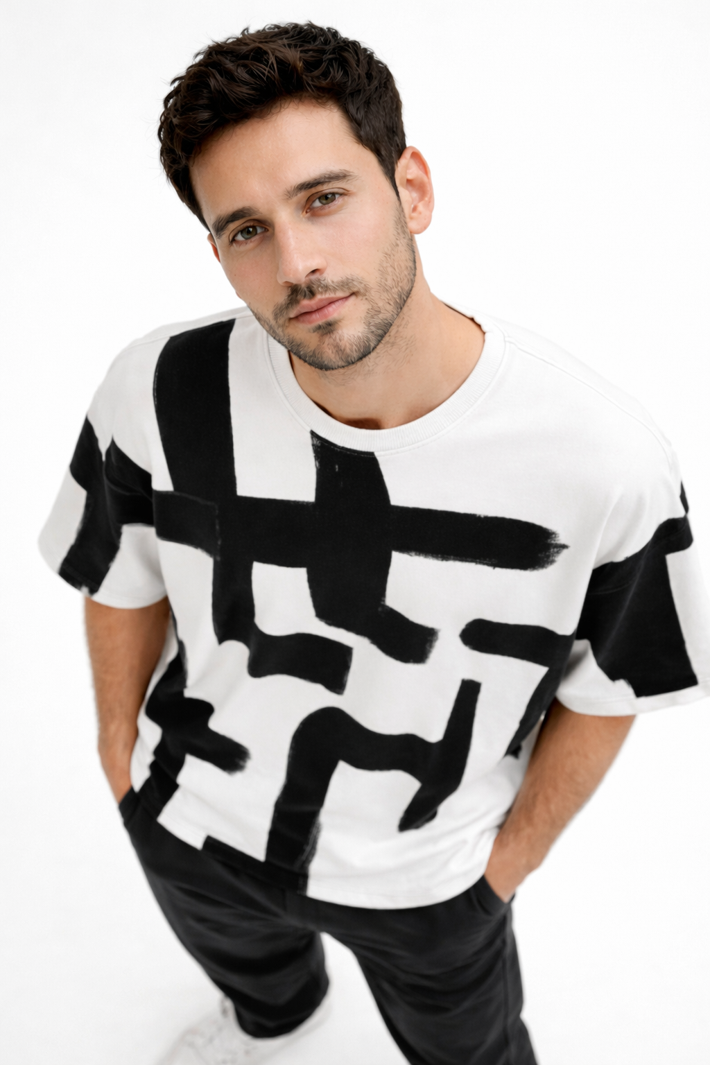 Abstract Brushstroke Black & White AOP T-Shirt